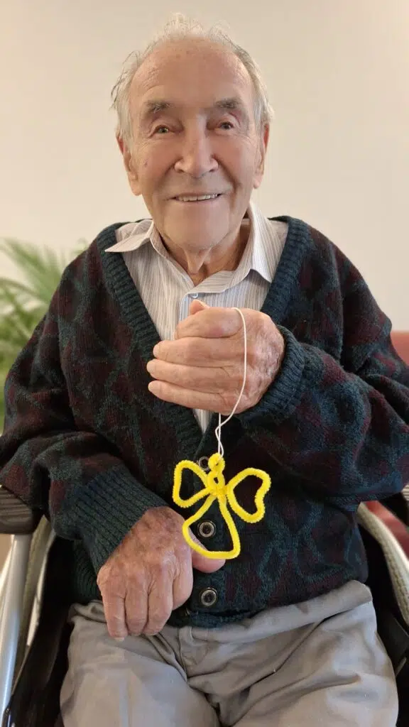Aus diesem Grund bastelten wir gemeinsam mit unseren Bewohner*innen kleine Engelfiguren, die leicht am Rollator oder Rollstuhl befestigt werden können – quasi ein Engel-to-go.