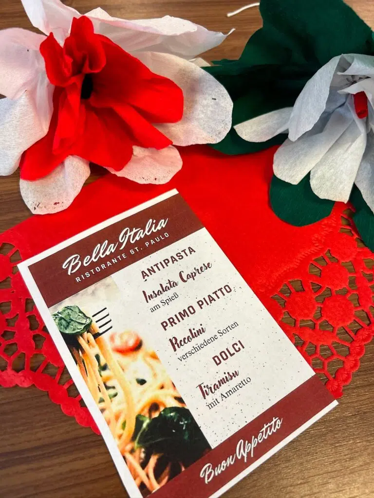 Unser heutiger Restaurantabend führte uns in das wohl beliebteste Urlaubsland der Deutschen - nach Italien. Ein Urlaubsgefühl mit Sonne, Strand und Meer bei einem leckeren Glas Lambrusco und landestypischen Speisen verbreitete sich schnell unter unseren Bewohner*innen und viele schwärmten von vergangenen Tagen im schönen Italien.