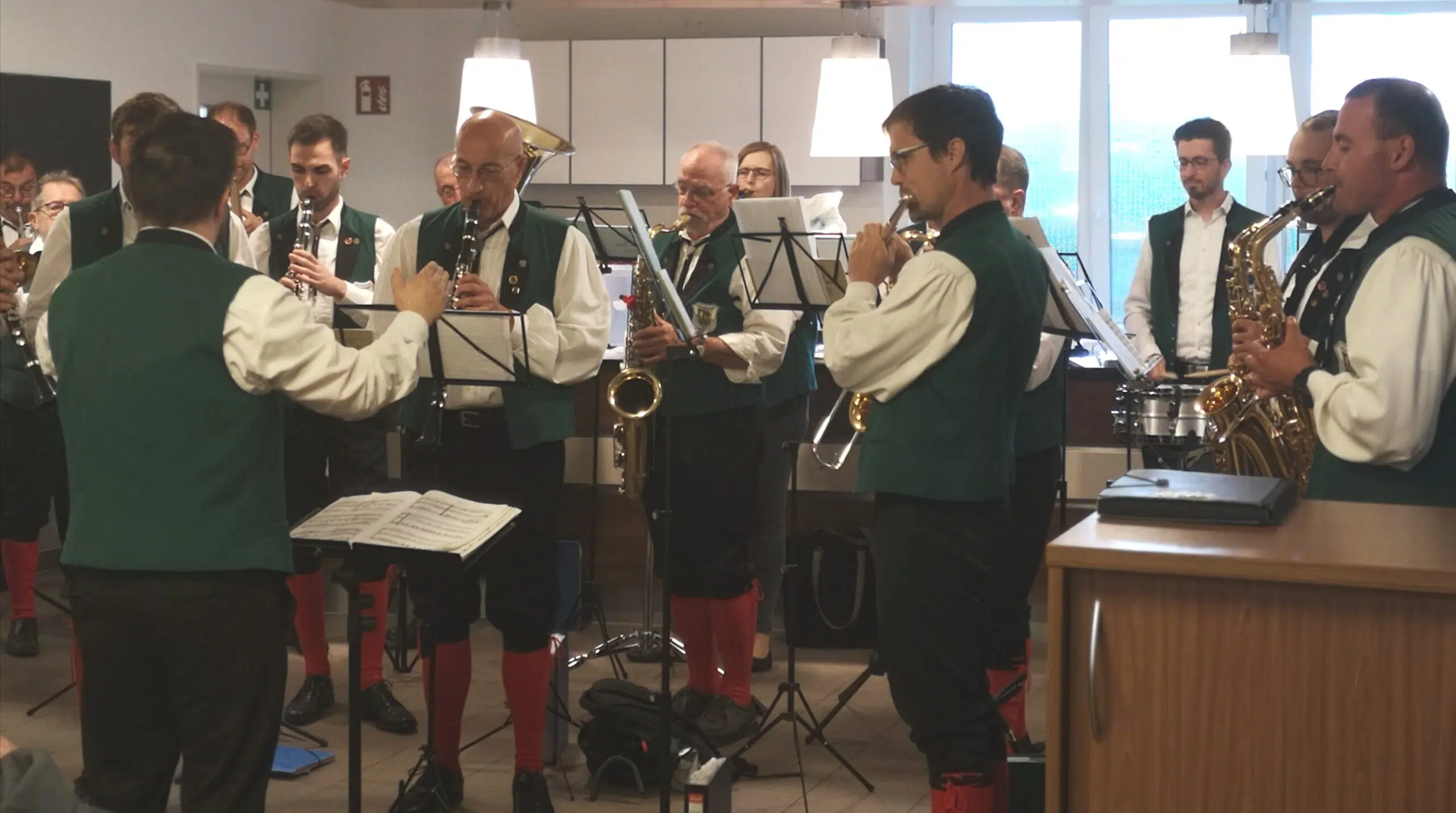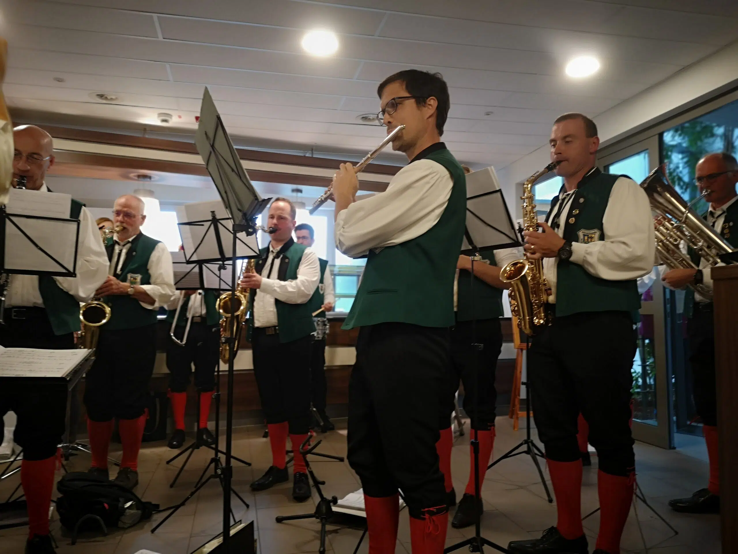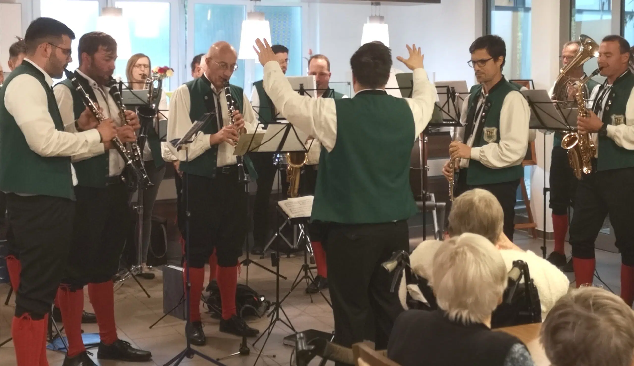 Heute gab der Musikverein Winzerkapelle Moselstern Detzem ein Konzert zu Ehren ihres Ehrenmitglieds und unserem Bewohner Martin L. Leider spielte das Wetter nicht mit und wir mussten kurzerhand das geplante Gartenkonzert nach innen verlegen. Dies tat aber der Stimmung keinen Abbruch. Besonders unsere männlichen Bewohner waren sehr von dem großartigen Repertoire an Marschmusik angetan.