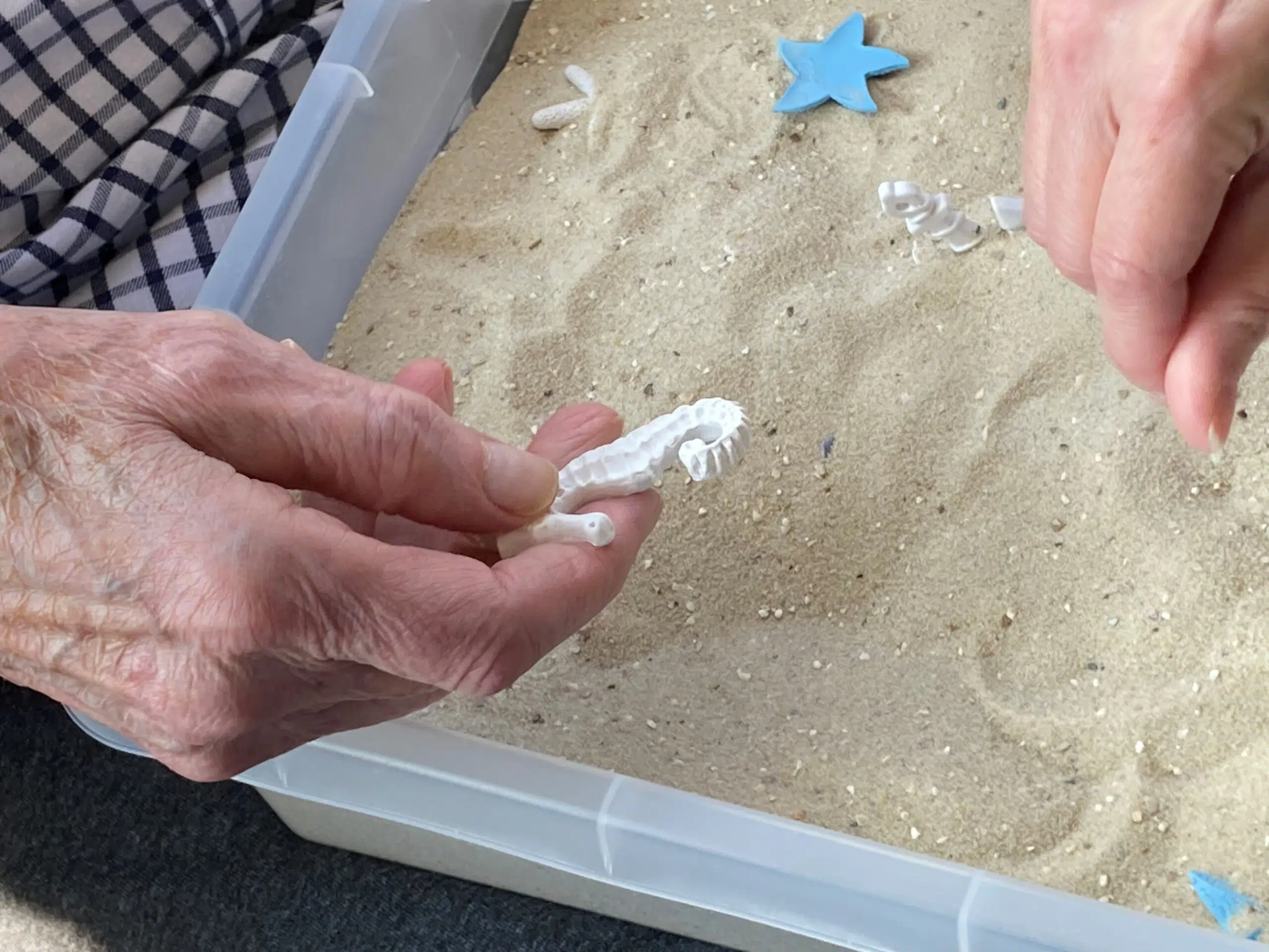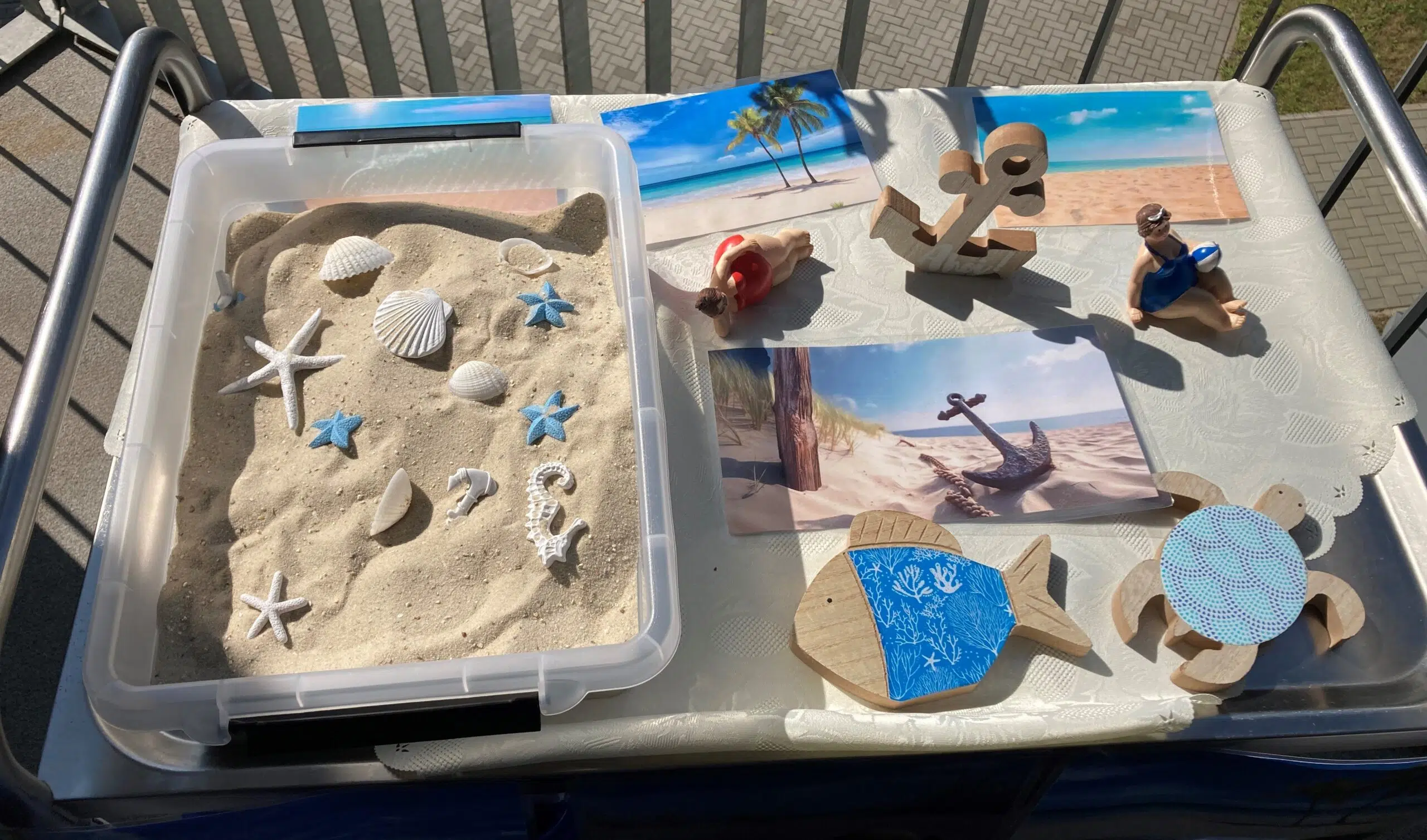 Endlich zeigt der Sommer sein lachendes Gesicht mit viel Sonnenschein und warmen Temperaturen. Genau das richtige Wetter, um einen Tag am Meer zu verbringen - bei einem erfrischenden Lüftchen im warmen Sand zu liegen und im Hintergrund dem Meeresrauschen zu lauschen. Jeder von uns wird sich bei dieser Vorstellung bestimmt an seinen letzten Urlaub oder Ausflug erinnern. Unser Wahrnehmungsangebot „Sandbaden“ zielt genau auf diese persönlichen Erinnerungen und Vorstellungen unserer Bewohner*innen ab und unterstützt dabei, diese wachzurufen. Zudem ist das Medium Sand vielfach einsetzbar und strahlt Wärme und Weichheit aus.