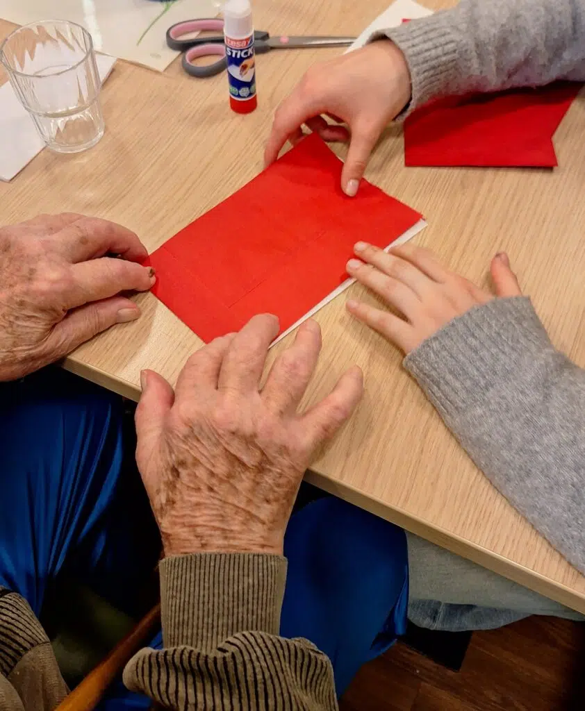 Wir hatten Besuch von den Schüler*innen der Kurfürst-Balduin Realschule plus. Gemeinsam bastelten wir Weihnachtssterne aus Butterbrottüten. Schnell war das Eis gebrochen und die Jugendlichen kamen mit unseren Bewohner*innen ins Gespräch. Geduldig unterstützen die Schüler*innen die Senior*innen bei der filigranen Bastelaufgabe. Viele ältere Menschen sind in ihrer Feinmotorik in den Händen eingeschränkt. So war man am Ende stolz auf die gemeinsamen Werke.