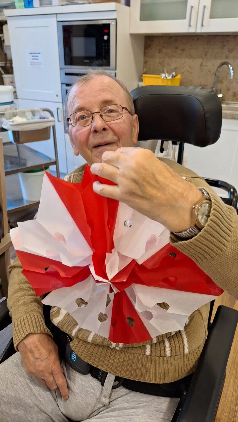 Wir hatten Besuch von den Schüler*innen der Kurfürst-Balduin Realschule plus. Gemeinsam bastelten wir Weihnachtssterne aus Butterbrottüten. Schnell war das Eis gebrochen und die Jugendlichen kamen mit unseren Bewohner*innen ins Gespräch. Geduldig unterstützen die Schüler*innen die Senior*innen bei der filigranen Bastelaufgabe. Viele ältere Menschen sind in ihrer Feinmotorik in den Händen eingeschränkt. So war man am Ende stolz auf die gemeinsamen Werke.
