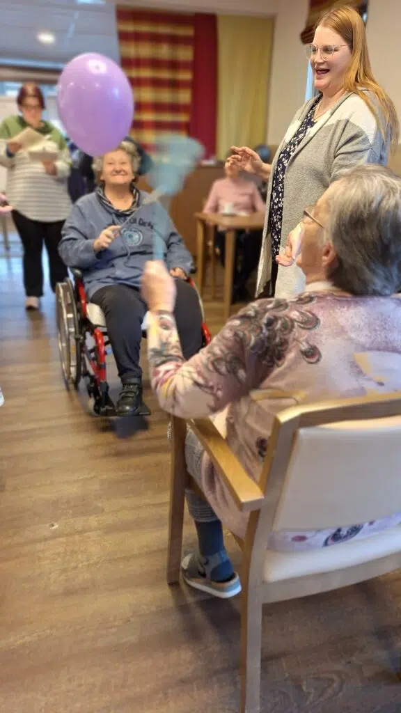 Heute konnten sich unsere Bewohner*innen gleich in 6 Disziplinen während unserer Spiel-Olympiade beweisen. Alle Sinne mussten angestrengt werden, um die Aufgaben zu erfüllen. Neben einem Geräusche-Quizz und einem Geschmacks-Test, mussten Gegenstände erfühlt werden. Insbesondere die letzte Disziplin hatte es aber in sich: in einer Luftballon-Schlacht traten zwei Gruppen gegeneinander an und brachten nicht nur unsere Bewohner*innen ins Schwitzen.