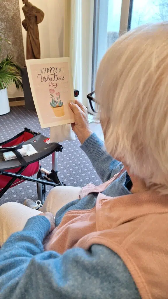 Neben einem süßen "Busserl" konnten die Bewohner*innen Valentinskarten an Freunde und Angehörige schreiben. Am Valentinstag wurden die Karten nebst zuckrigen Herzen aus Fruchtgummi verteilt, die unseren Senior*innen ein freudiges Lächeln ins Gesicht zauberten.