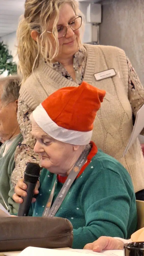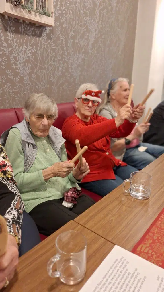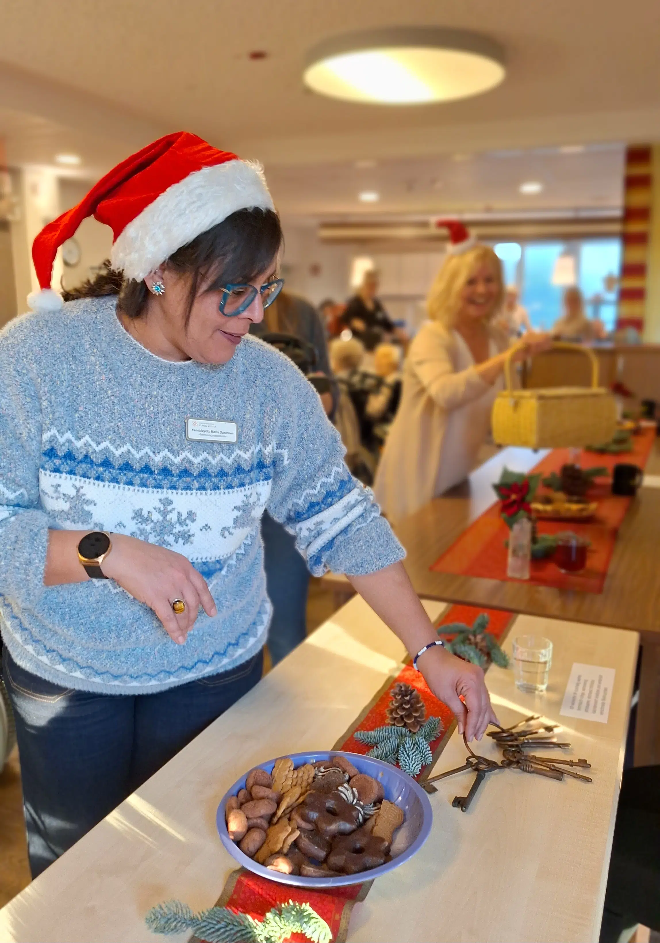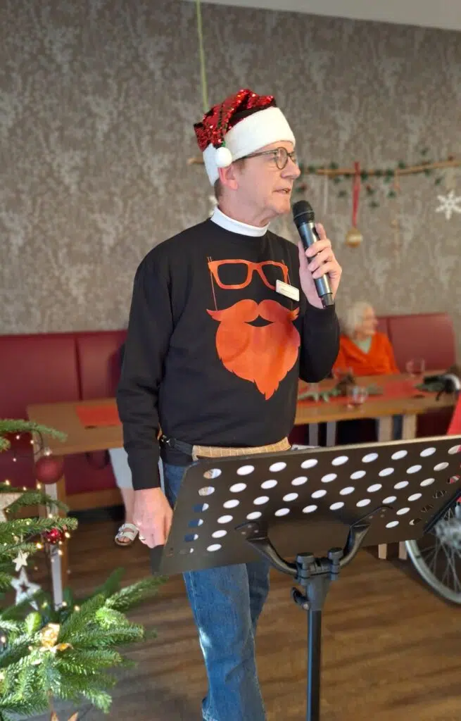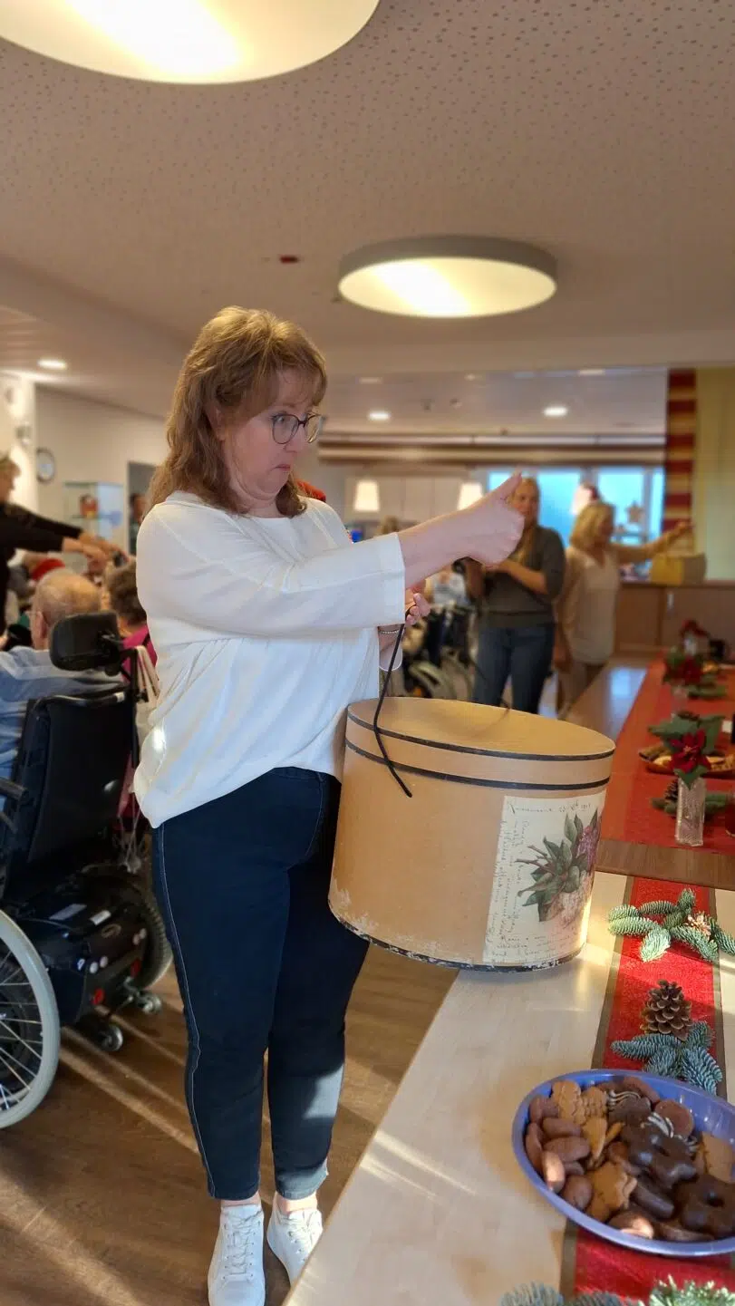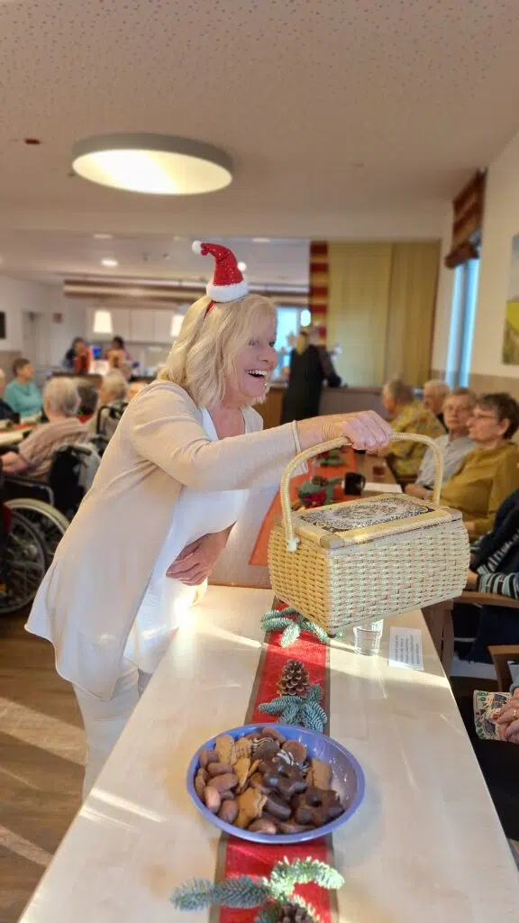 Die Zeit verfliegt und schon in ein paar Tagen ist Weihnachten. So fand auch in diesem Jahr wieder unsere Weihnachtsfeier statt. Unsere Bewohner*innen erwartete ein kunterbuntes Programm, bei dem teilweise auch ihre Fertigkeiten gefragt waren. Zu Anfang wurde von den Bewohner*innen selbst die Weihnachtsgeschichte mit verschiedenen Rollen vorgelesen. Im Vorfeld wurde hier schon Wochen vorher fleißig geübt und das Lampenfieber war groß. Bei dem Merkspiel aus den 70er Jahren „Am laufenden Band“ mussten sich die Senioren und Seniorinnen verschiedene Gegenstände merken und anschließend aufzählen. Gemeinschaftlich konnte diese Aufgabe mit Bravour erfüllt werden. Aber auch musikalisch war Einsatz gefragt. Neben einem Weihnachtslieder-Quizz durften die Bewohner*innen zu dem Text von „Markt und Straßen“ mit unterschiedlichen Instrumenten musizieren. Das war ein großer Spaß, wenn jemand seinen Einsatz verpasst hat. Natürlich gab es auch die besinnlichen Momente, an denen hin und wieder ein Tränchen vergossen wurde. Aber auch das gehört zu Weihnachten!