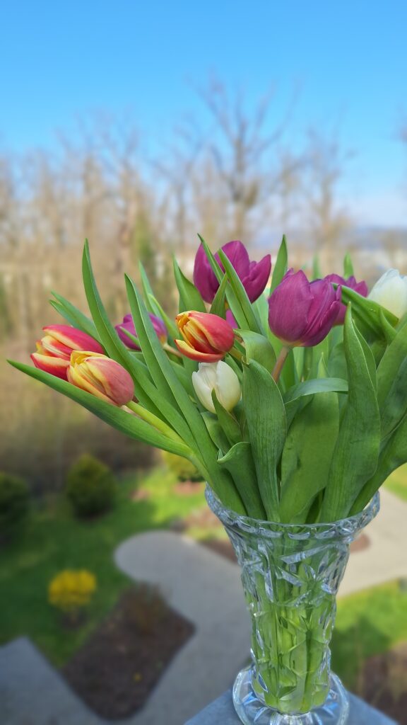 Zum Frühlingsanfang überraschten wir unsere Bewohner*innen mit bunten Tulpen. Passend zeigte sich die Sonne von ihrer besten Seite und brachte uns frühlingshafte Temperaturen. Endlich liegt die dunkle Jahreszeit hinter uns! Wir freuen uns über Vogelgezwitscher am frühen Morgen, das Brummen fleißiger Bienchen und das Aufgehen der ersten Knospen.