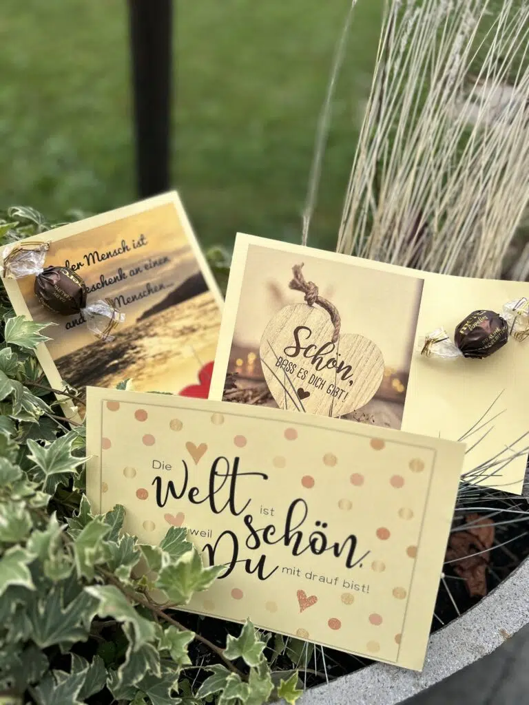 Dankeskarten mit Schokolade. Begeistert nahmen die Senioren das Zeichen der