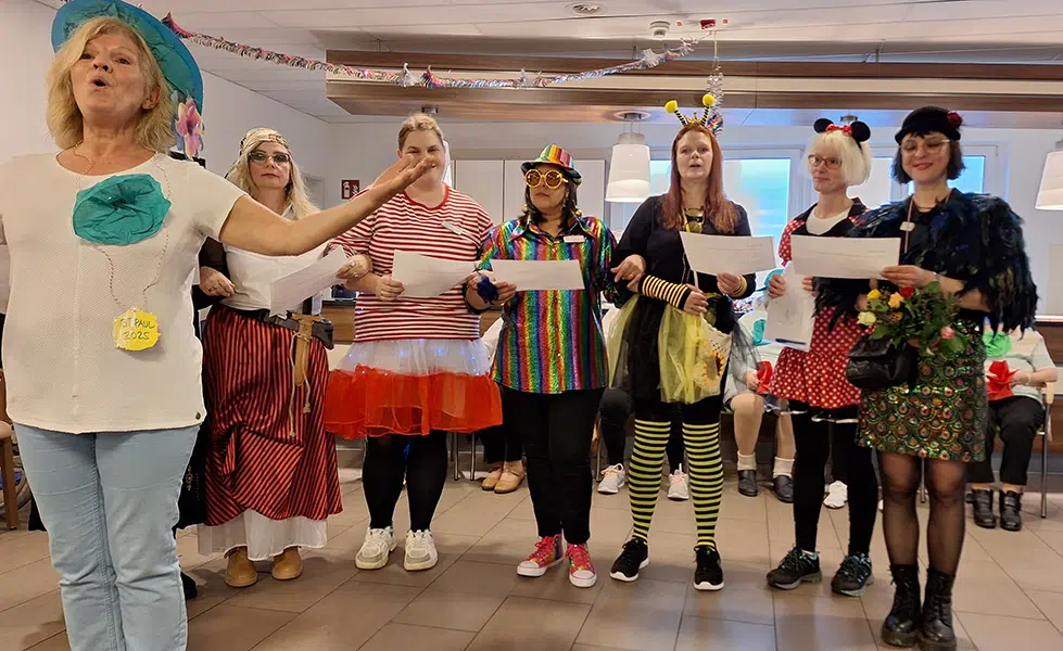 Wir begannen die närrische Zeit wie jedes Jahr mit unserer hauseigenen Kappensitzung. Ein buntes Programm stand auf dem Plan mit ironischen Büttenreden, karnevalistischen Liedern, Schunkeleinlagen und dem Auftritt unserer Sitztanzgruppe "Die flotten Paulas".