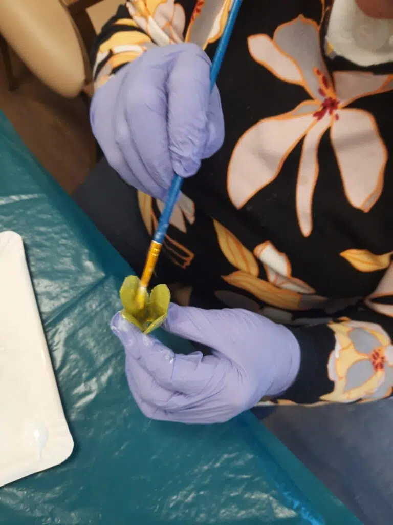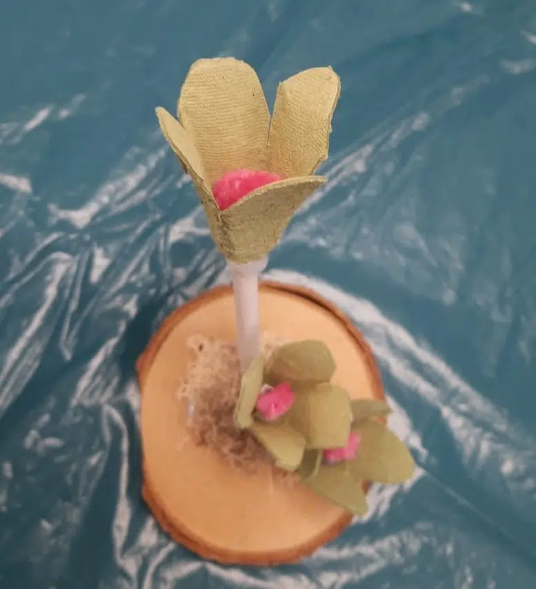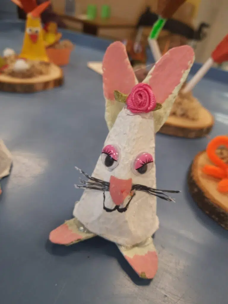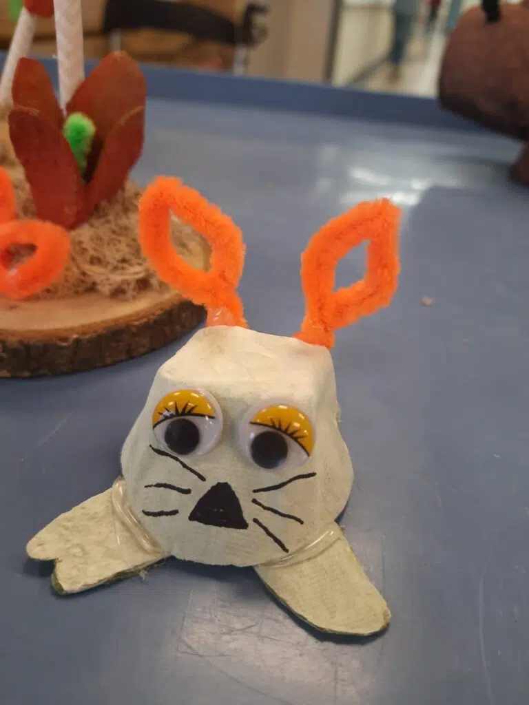 Unsere Frühlingsboten sind ganz einfach in der Herstellung. Die Figuren werden aus Eierkarton zugeschnitten, mit Acrylfarbe angemalt und je nach Figur mit Mund, Nase und Augen versehen.