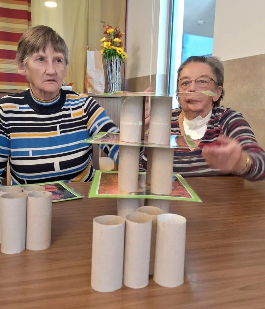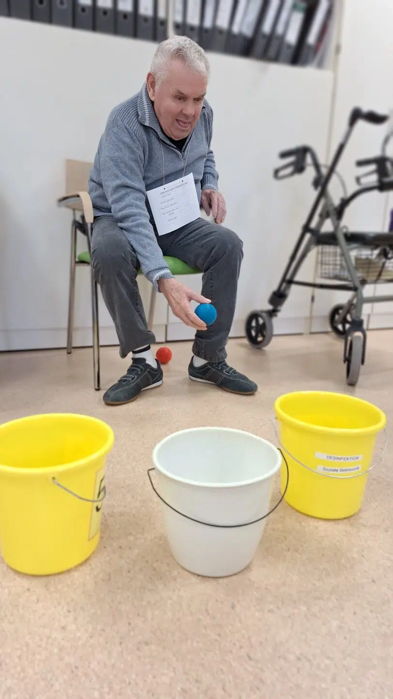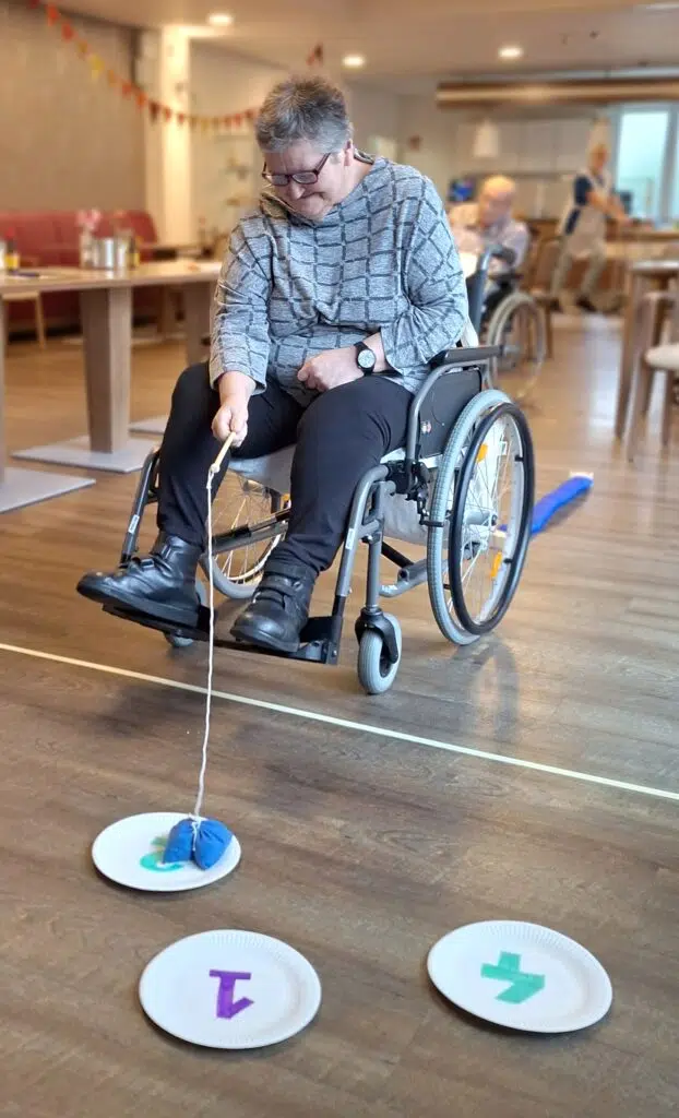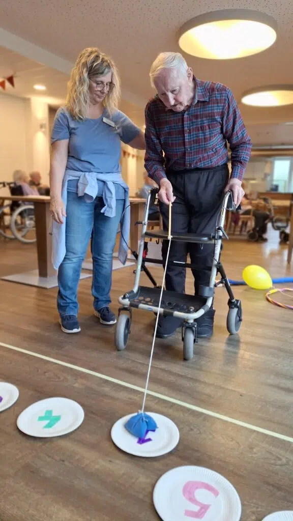 An unserer diesjährigen Sport-Olympiade durften unsere Bewohner*innen nicht nur ihr physisches Können unter Beweis stellen. Diesmal war auch Geschicklichkeit gefragt. So mussten Zahlen geangelt, Luftballons zielsicher geworfen werden und Bälle einen Eimer treffen. Am Nachmittag ging es dann um Zusammenarbeit. In Gruppen sollte möglichst schnell gemeinsam ein Turm aus Papierrollen gestapelt werden.