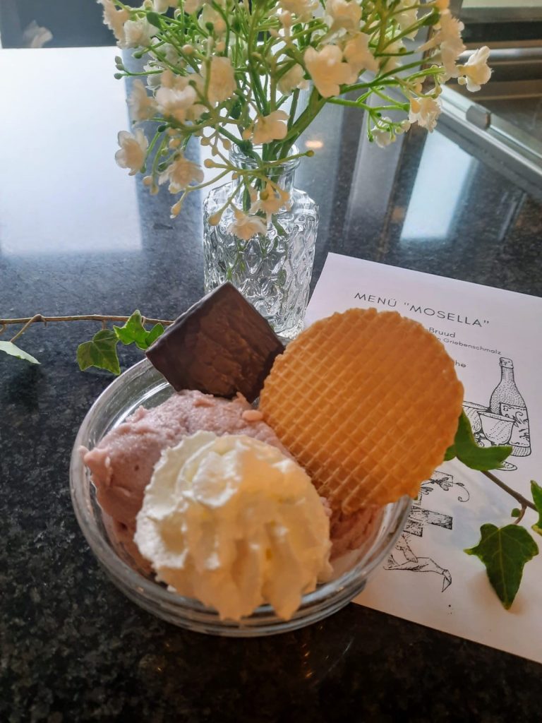 Bei unserem letzten Restaurantabend in diesem Jahr wurden regionale Spezialitäten serviert. Denn die moselländische Küche hat so einiges zu bieten. Unsere Bewohner*innen freuten sich über Häppchen mit Schmalz und selbstgemachter Kräuterbutter, herzhaften Zwiebelkuchen und zum Abschluss über leckere Weincreme. Dazu nach Belieben ein Glas Rot- oder Weißwein.
