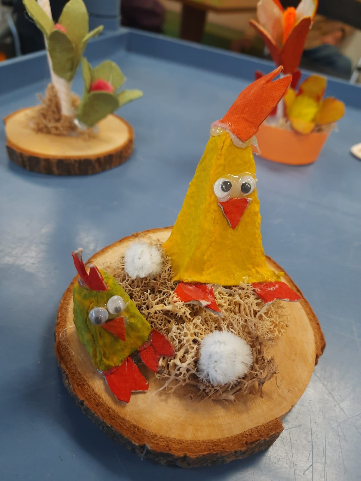 27.03.2026 - Goldige Frühlingsboten Auch wenn der Frühling sich noch nicht so recht zu erkennen geben will, waren wir fleißig und haben kleine Frühlingsboten gebastelt. Unsere Frühlingsboten sind ganz einfach in der Herstellung. Die Figuren werden aus Eierkarton zugeschnitten, mit Acrylfarbe angemalt und je nach Figur mit Mund, Nase und Augen versehen. Goldig, oder?